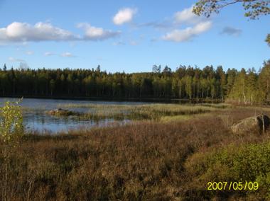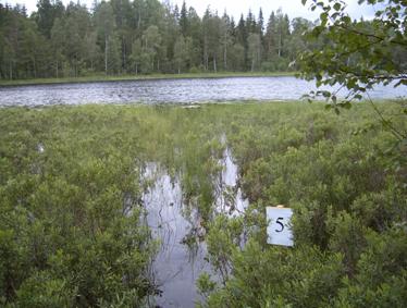 7 och 8 (Fig. 1). En stig följer norra och södra sidan på sjön och går man